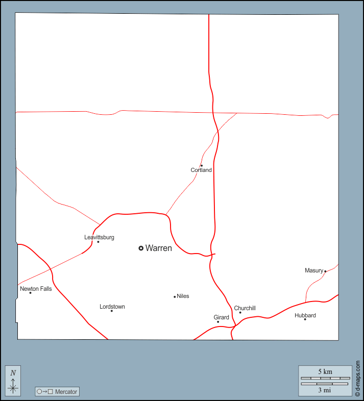 d-maps > संयुक्त राज्य > ओहायो > ट्रंबुल काउंटी > बाह्यरेखा, मुख्य शहरों, सड़कों, नाम