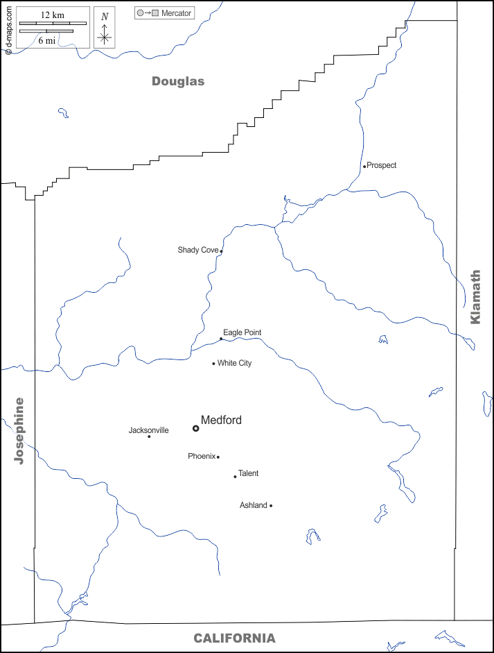 d-maps > संयुक्त राज्य > औरिगन > जैक्सन काउंटी > सीमाओं, जल-सर्वेक्षण, मुख्य शहरों, नाम, सफेद