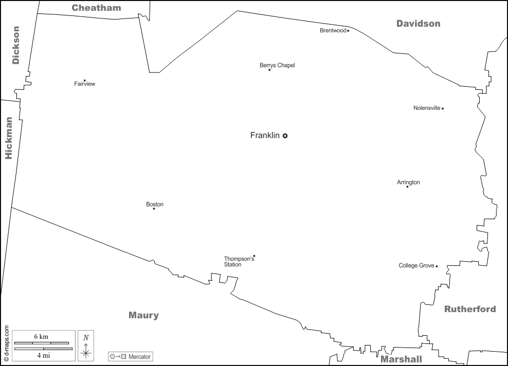 d-maps > संयुक्त राज्य > टेनेसी > विलियमसन काउंटी > सीमाओं, मुख्य शहरों, नाम, सफेद