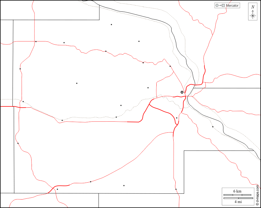 d-maps > संयुक्त राज्य > आयोवा > ड्यूबेक काउंटी > सीमाओं, मुख्य शहरों, सड़कों, सफेद