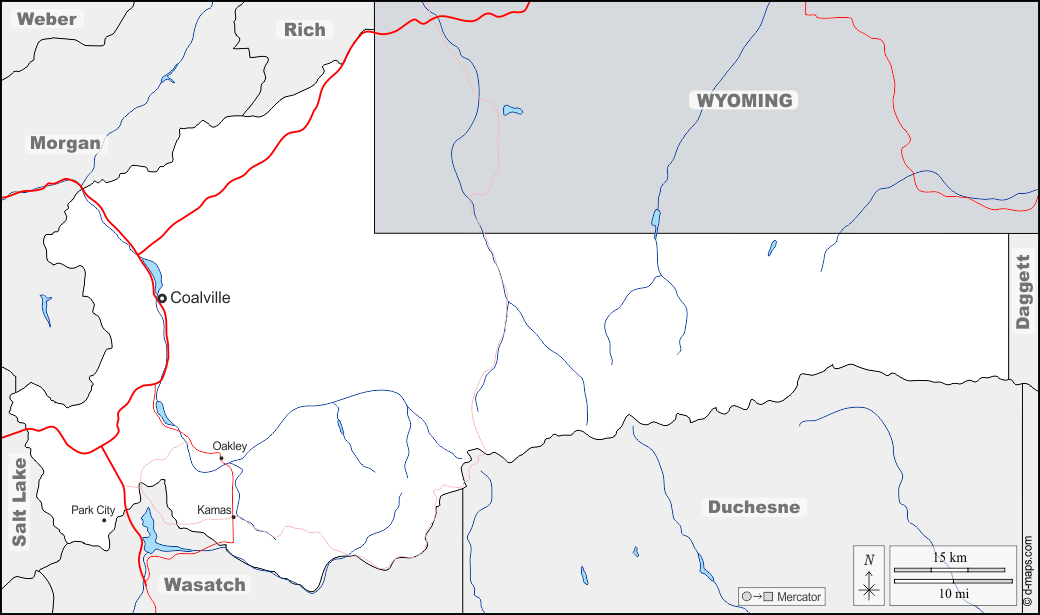 d-maps > संयुक्त राज्य > यूटा > शिखर सम्मेलन काउंटी > सीमाओं, जल-सर्वेक्षण, मुख्य शहरों, सड़कों, नाम