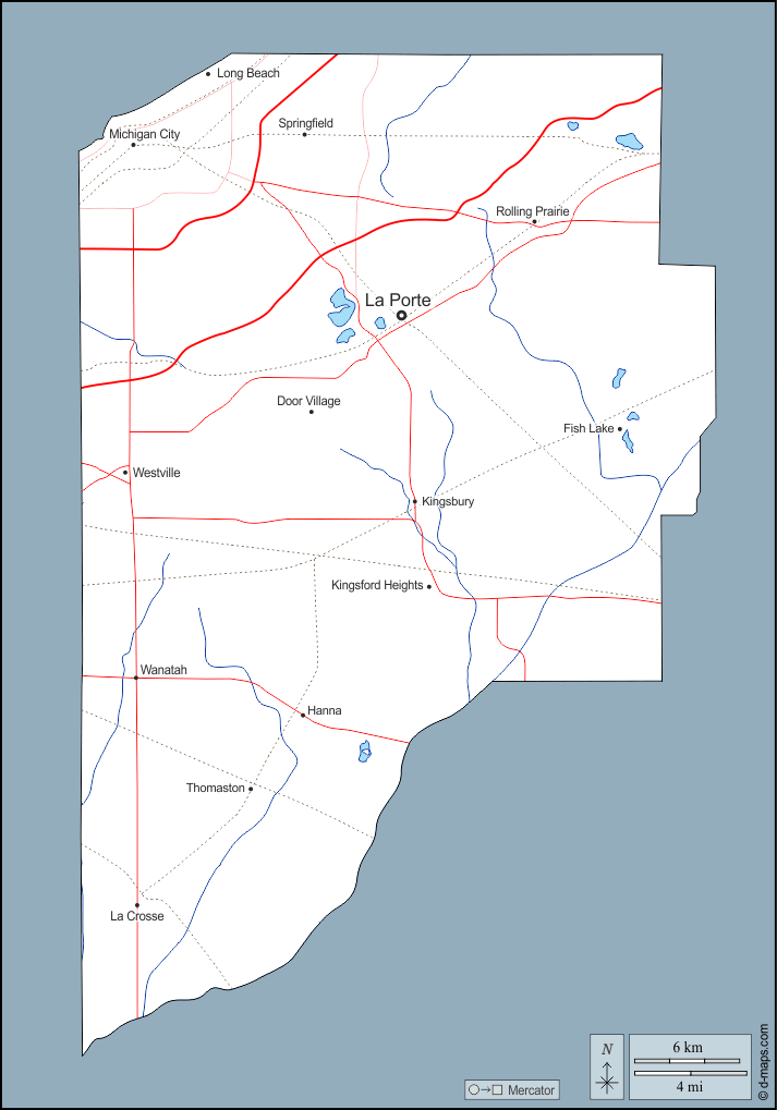 d-maps > संयुक्त राज्य > इंडियाना > काउंटी > बाह्यरेखा, जल-सर्वेक्षण, मुख्य शहरों, सड़कों, नाम