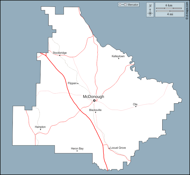 d-maps > संयुक्त राज्य > जॉर्जिया > हेनरी काउंटी > बाह्यरेखा, मुख्य शहरों, सड़कों, नाम