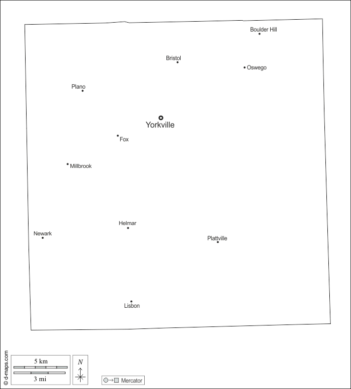 d-maps > संयुक्त राज्य > इलिनॉय > केंडल काउंटी > बाह्यरेखा, मुख्य शहरों, नाम, सफेद