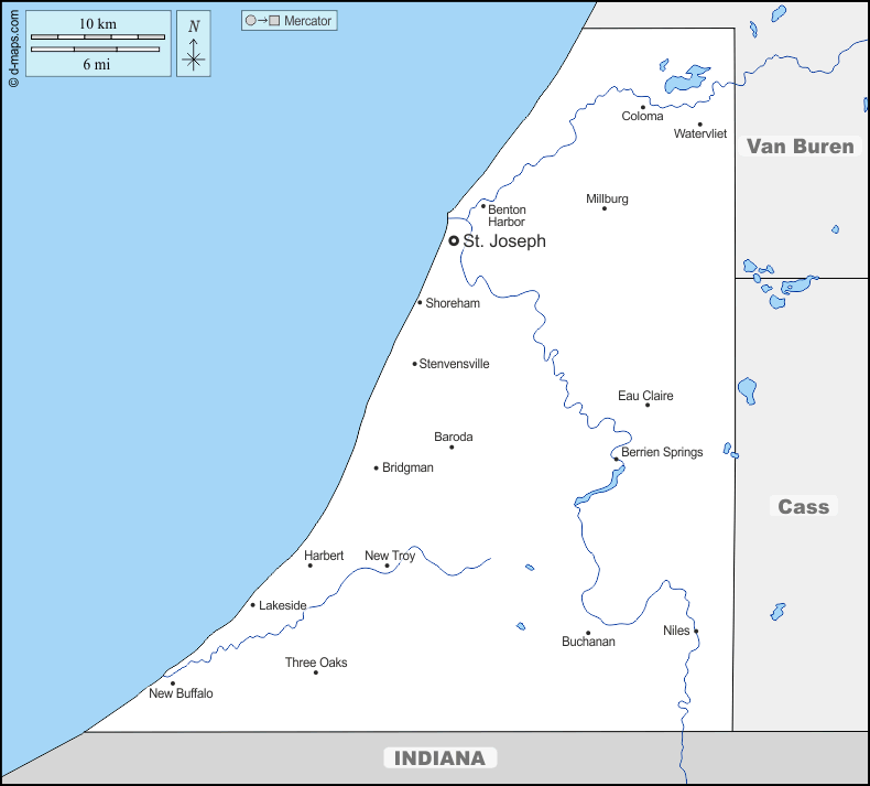 d-maps > संयुक्त राज्य > मिशिगन > बेरिएन काउंटी > सीमाओं, जल-सर्वेक्षण, मुख्य शहरों, नाम