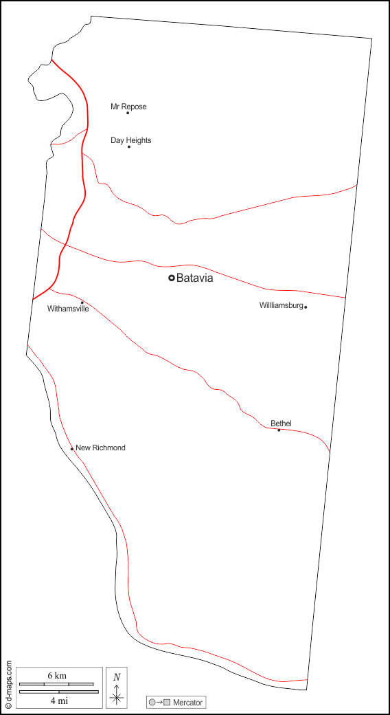 d-maps > संयुक्त राज्य > ओहायो > क्लर्मॉंट काउंटी > बाह्यरेखा, मुख्य शहरों, सड़कों, नाम, सफेद