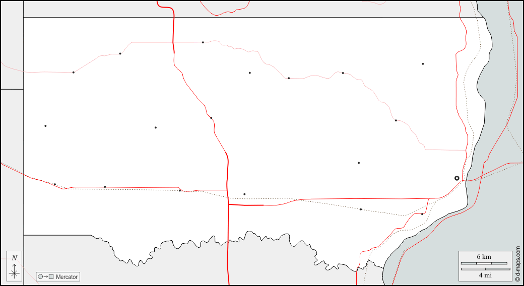 d-maps > संयुक्त राज्य > आयोवा > क्लिंटन काउंटी > सीमाओं, मुख्य शहरों, सड़कों