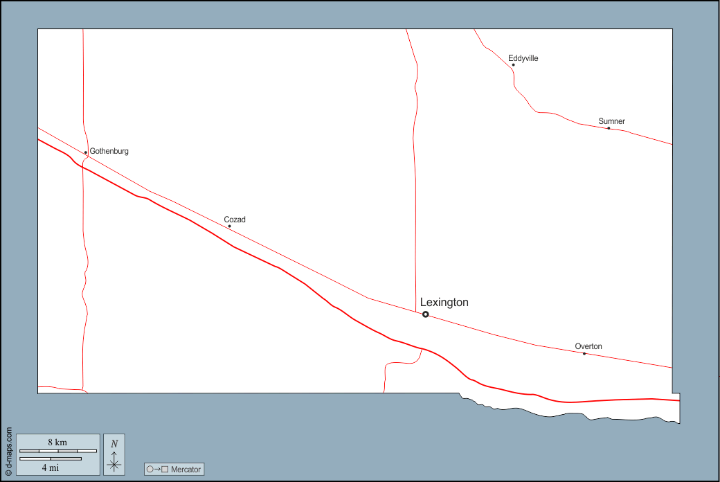 d-maps > संयुक्त राज्य > नेब्रास्का > डॉसन काउंटी > बाह्यरेखा, मुख्य शहरों, सड़कों, नाम
