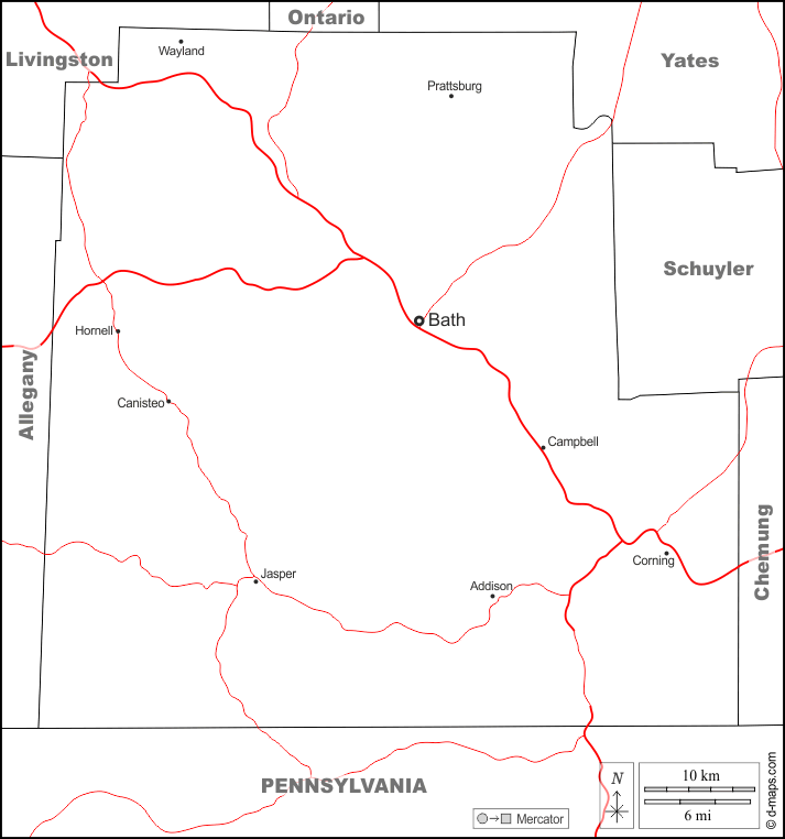 d-maps > संयुक्त राज्य > न्यू यॉर्क > स्टीबेन काउंटी > सीमाओं, मुख्य शहरों, सड़कों, नाम, सफेद