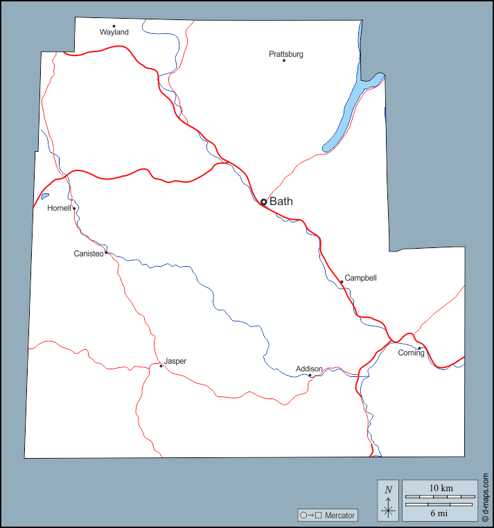 d-maps > संयुक्त राज्य > न्यू यॉर्क > स्टीबेन काउंटी > बाह्यरेखा, जल-सर्वेक्षण, मुख्य शहरों, सड़कों, नाम