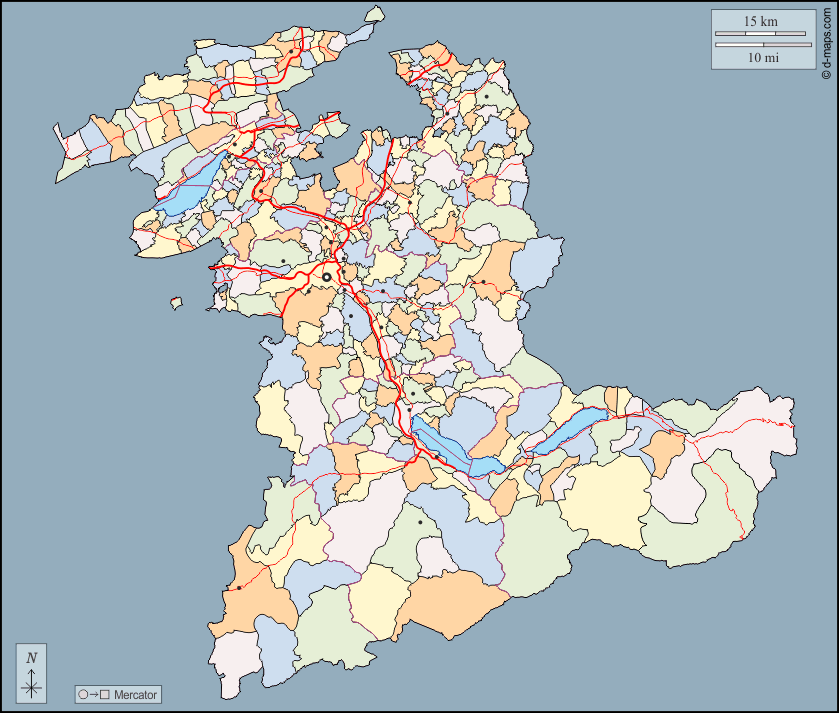 d-maps > यूरोप > स्विट्ज़रलैंड > बर्न > बाह्यरेखा, नगर पालिकाओं, मुख्य शहरों, सड़कों, रंग