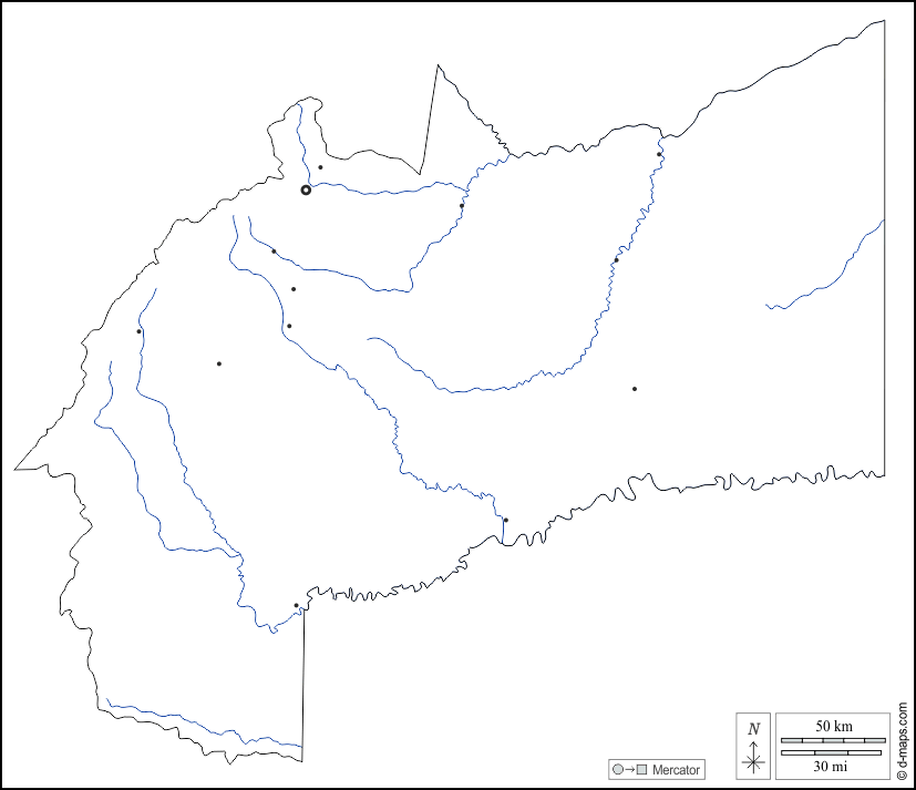 d-maps > महाअमेरिका > कोलंबिया > मेटा विभाग > बाह्यरेखा, जल-सर्वेक्षण, मुख्य शहरों, सफेद