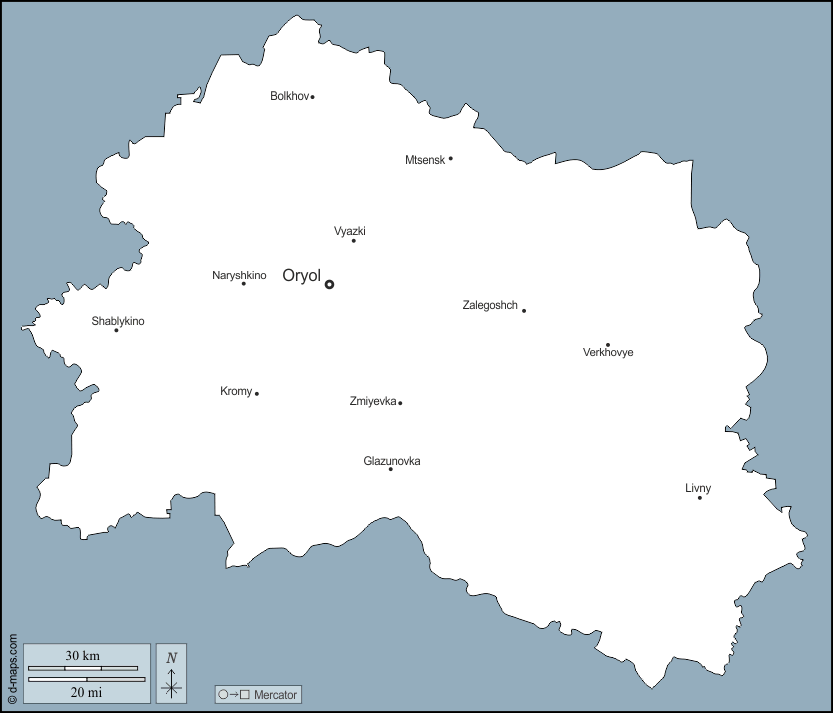 d-maps > यूरोप > रूस > ऑरोल > बाह्यरेखा, मुख्य शहरों, नाम