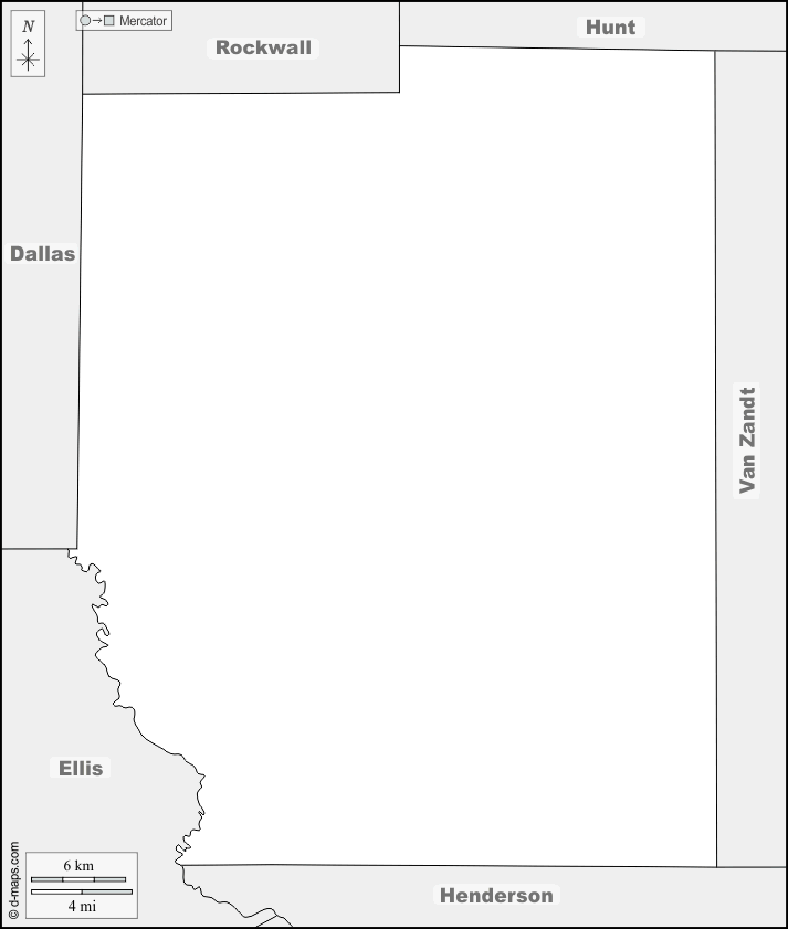 d-maps > संयुक्त राज्य > टेक्सास > कौफमैन काउंटी > सीमाओं, नाम