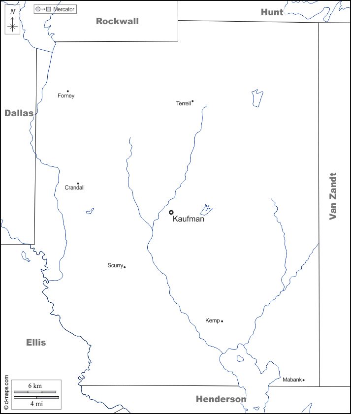 d-maps > संयुक्त राज्य > टेक्सास > कौफमैन काउंटी > सीमाओं, जल-सर्वेक्षण, मुख्य शहरों, नाम, सफेद