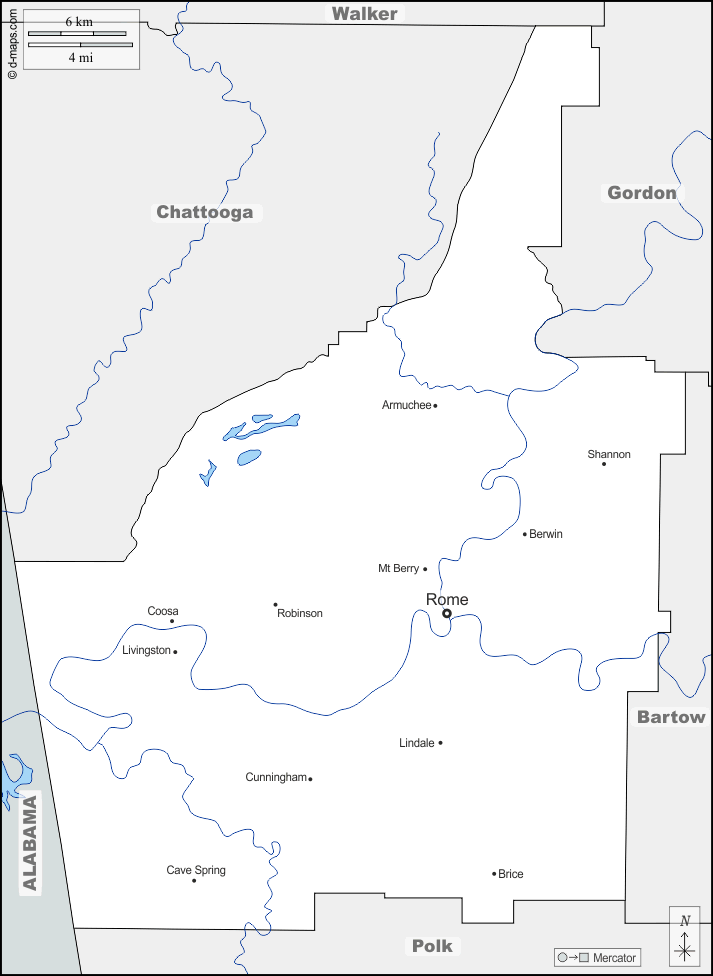 d-maps > संयुक्त राज्य > जॉर्जिया > फ्लोयड काउंटी > सीमाओं, जल-सर्वेक्षण, मुख्य शहरों, नाम