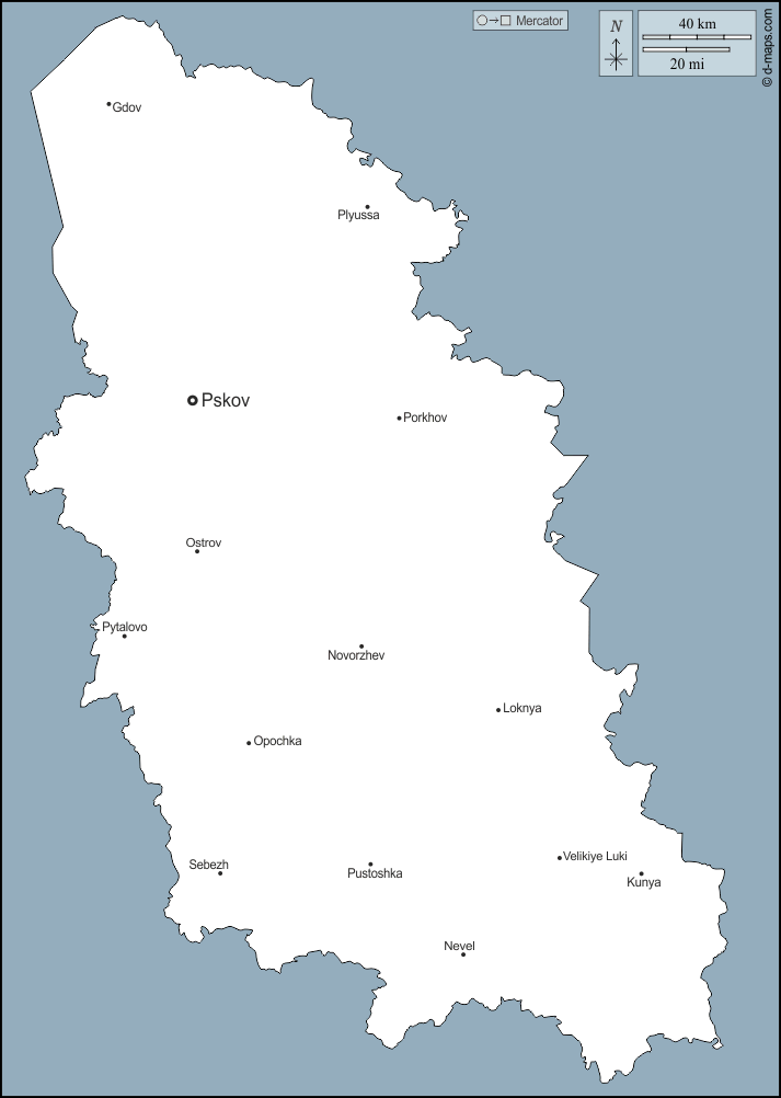 d-maps > यूरोप > रूस > पस्कोव > बाह्यरेखा, मुख्य शहरों, नाम