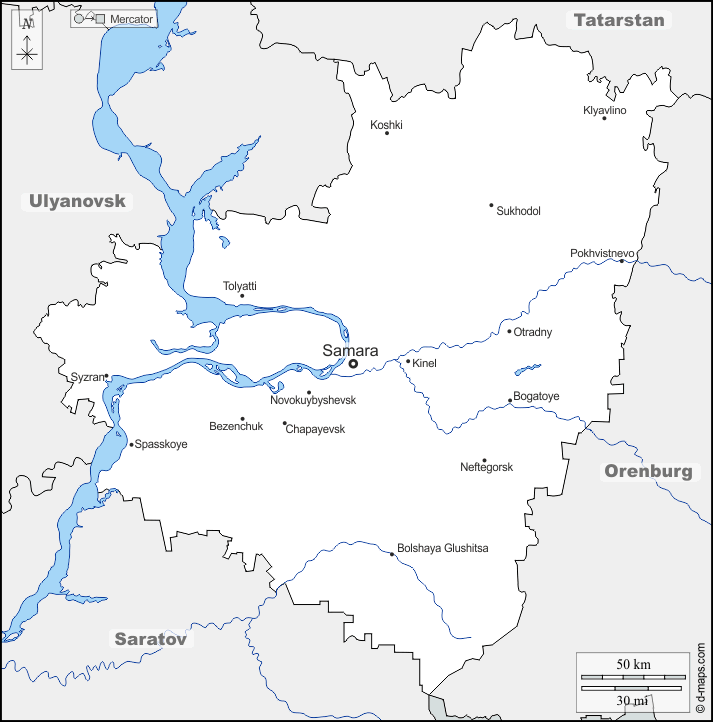 d-maps > यूरोप > रूस > समारा ओब्लास्त > सीमाओं, जल-सर्वेक्षण, मुख्य शहरों, नाम