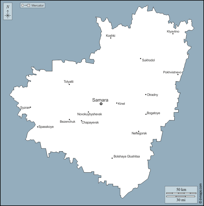 d-maps > यूरोप > रूस > समारा ओब्लास्त > बाह्यरेखा, मुख्य शहरों, नाम