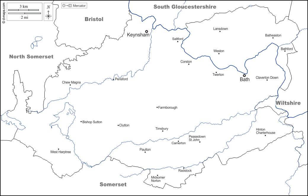 d-maps > यूरोप > युनाइटेड किंगडम > स्नान और उत्तर पूर्व सोमरसेट > सीमाओं, जल-सर्वेक्षण, मुख्य शहरों, नाम, सफेद