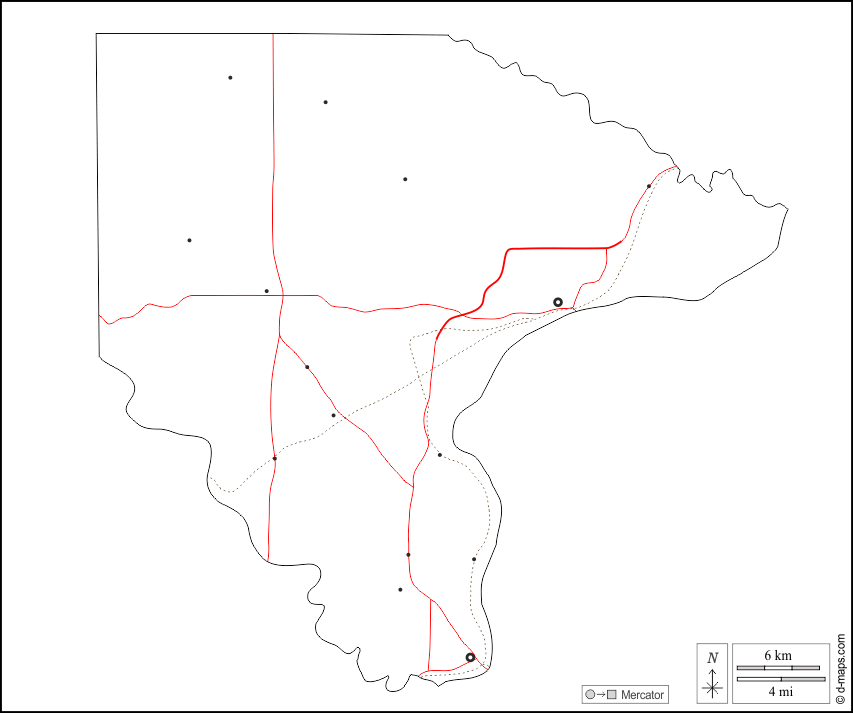 d-maps > संयुक्त राज्य > आयोवा > ली काउंटी > बाह्यरेखा, मुख्य शहरों, सड़कों, सफेद