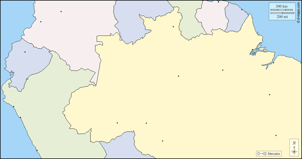 d-maps > महाअमेरिका > अमेज़न नदी > राज्यों, मुख्य शहरों, रंग