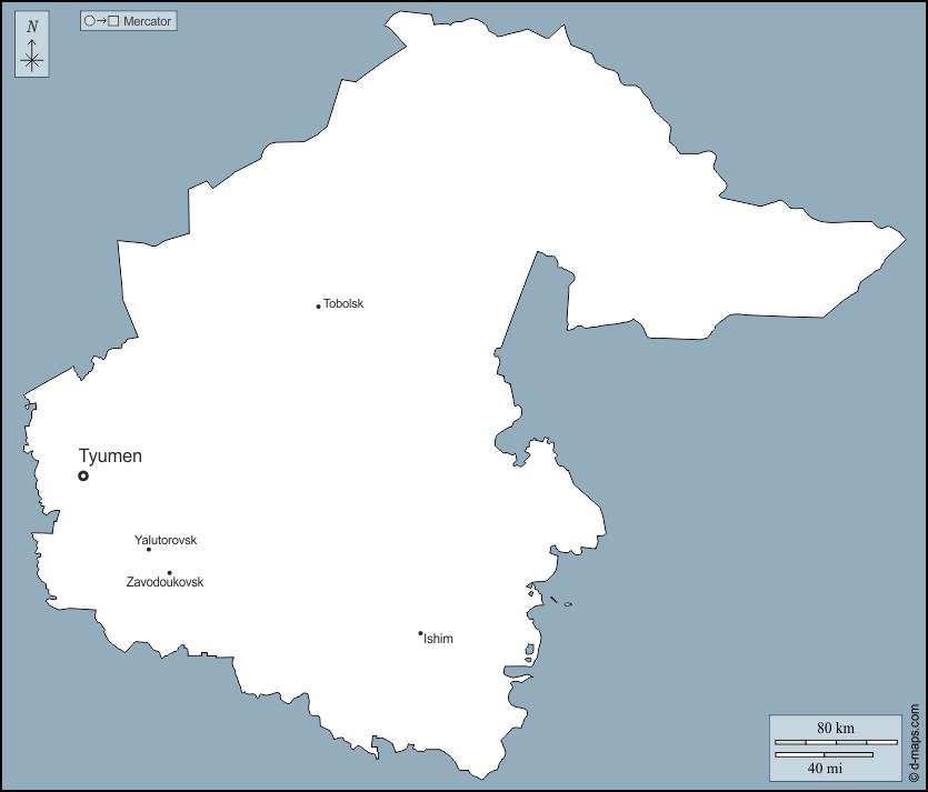 d-maps > यूरोप > रूस > ट्युनमेन > बाह्यरेखा, मुख्य शहरों, नाम