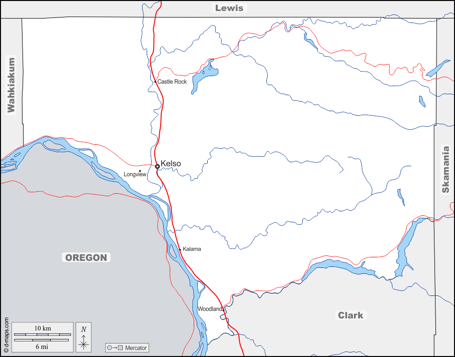d-maps > संयुक्त राज्य > वॉशिंगटन > काउलित्ज़ काउंटी > सीमाओं, जल-सर्वेक्षण, मुख्य शहरों, सड़कों, नाम