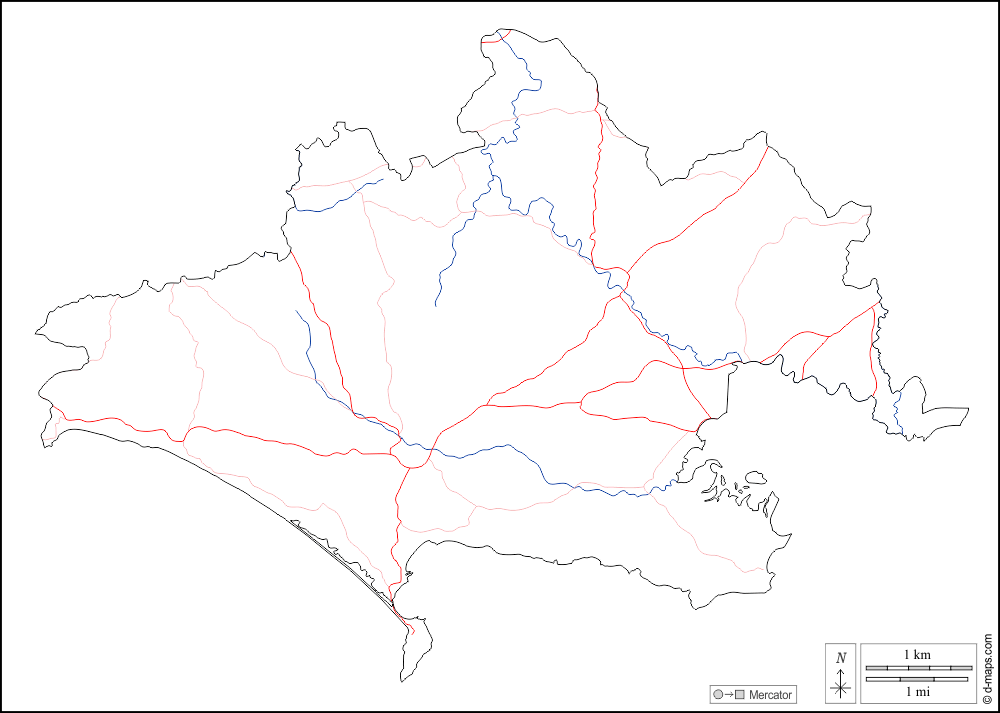 d-maps > यूरोप > युनाइटेड किंगडम > डॉर्सेट > बाह्यरेखा, जल-सर्वेक्षण, सड़कों, सफेद