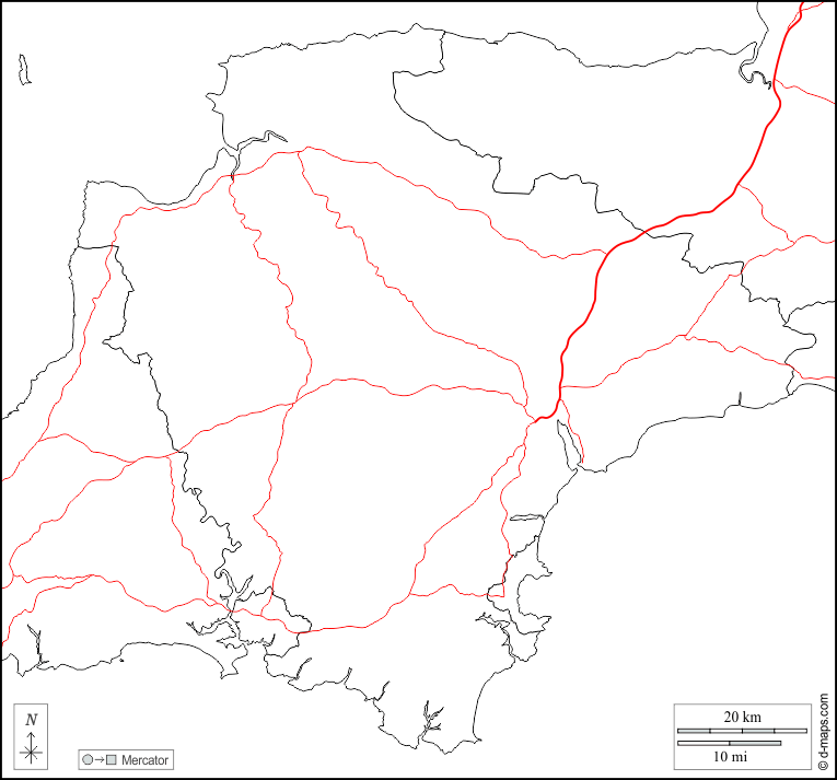 यूरोप > युनाइटेड किंगडम > डेवन > सीमाओं, सड़कों, सफेद
