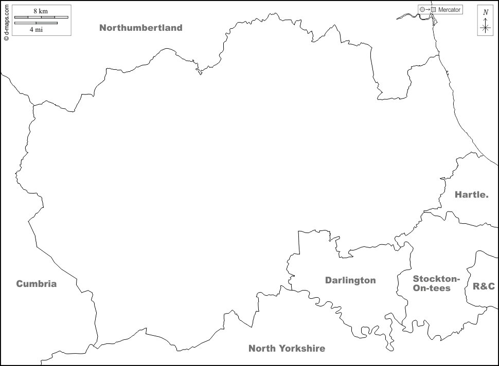 d-maps > यूरोप > युनाइटेड किंगडम > डरहम > सीमाओं, नाम, सफेद
