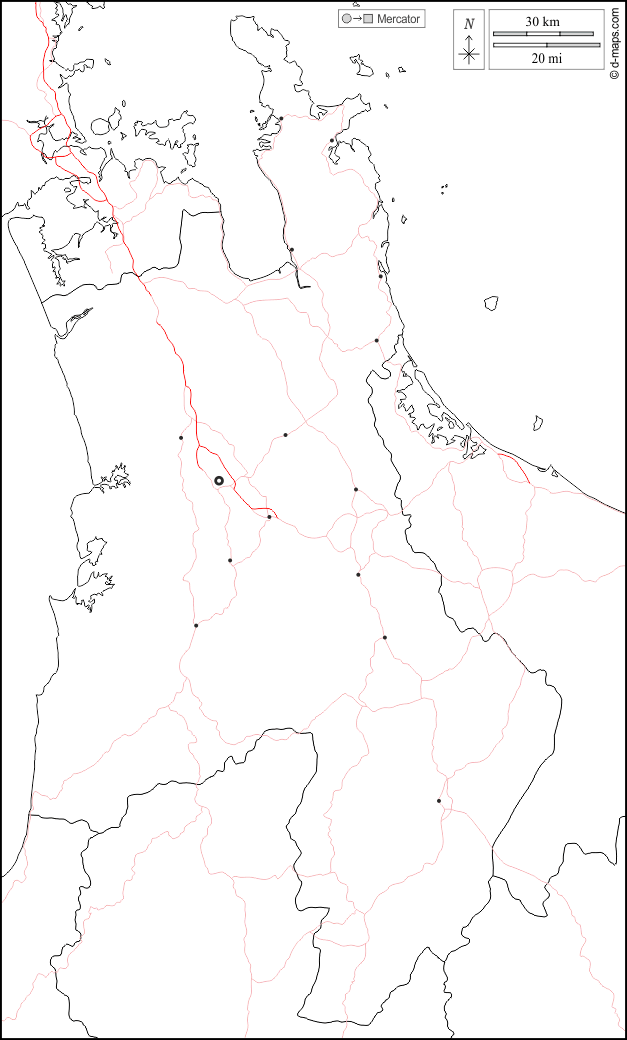 d-maps > ओशिनिया > वाइकाटो क्षेत्र > सीमाओं, मुख्य शहरों, सड़कों, सफेद