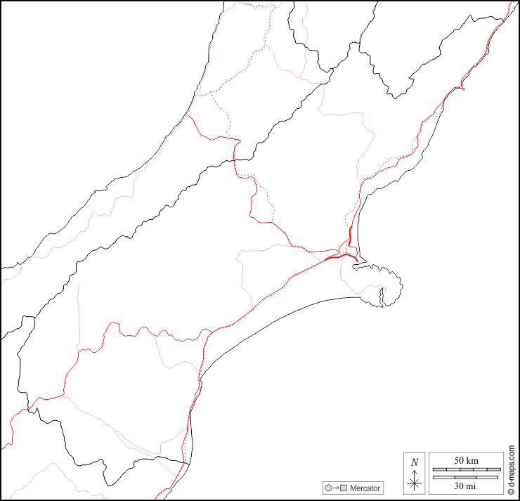 d-maps > ओशिनिया > कैंटरबरी > सीमाओं, सड़कों, सफेद
