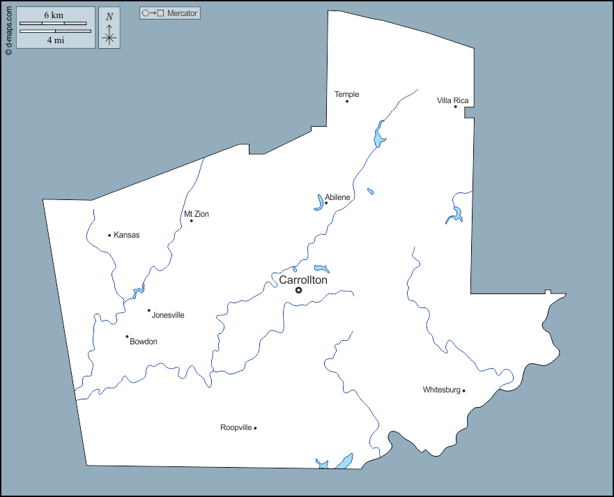 d-maps > संयुक्त राज्य > जॉर्जिया > कैरोल काउंटी > बाह्यरेखा, जल-सर्वेक्षण, मुख्य शहरों, नाम