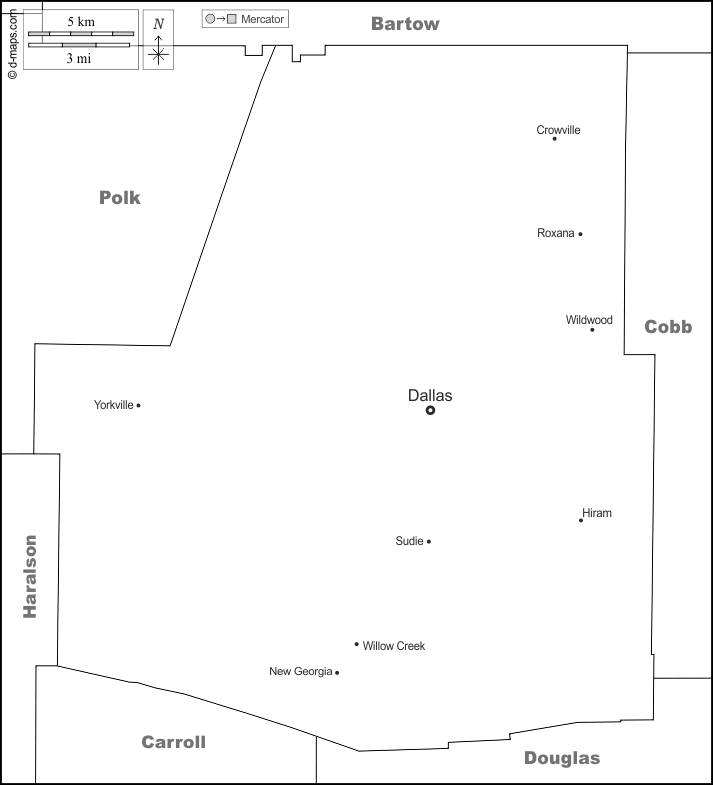 d-maps > संयुक्त राज्य > जॉर्जिया > पॉलडिंग काउंटी > सीमाओं, मुख्य शहरों, नाम, सफेद