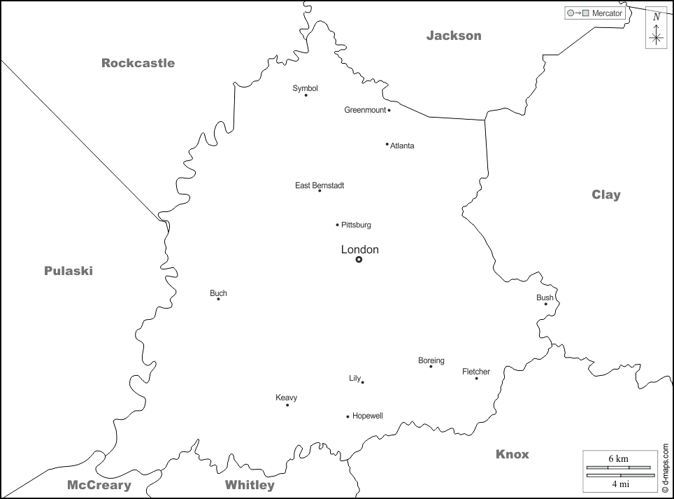d-maps > संयुक्त राज्य > केंटुकी > लॉरेल काउंटी > सीमाओं, मुख्य शहरों, नाम, सफेद