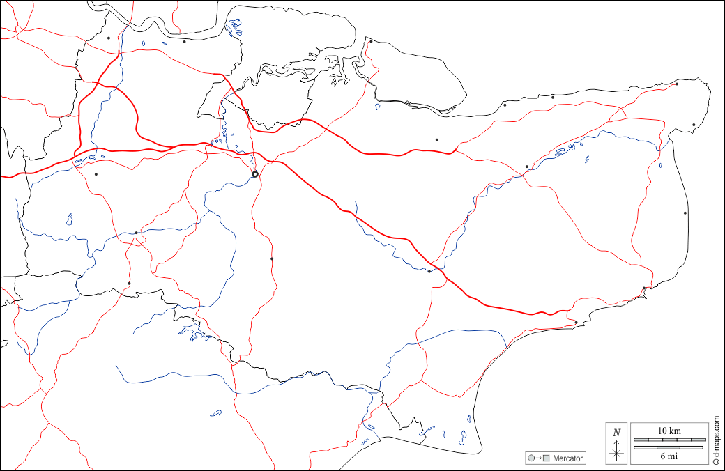 d-maps > यूरोप > युनाइटेड किंगडम > केंट > सीमाओं, जल-सर्वेक्षण, मुख्य शहरों, सड़कों, सफेद