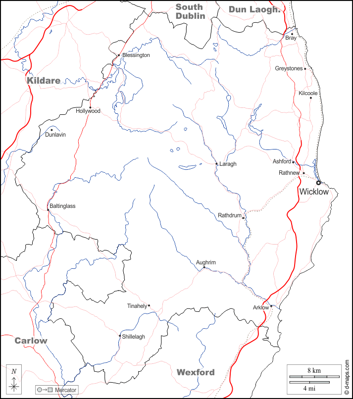 d-maps > यूरोप > आयरलैण्ड गणतंत्र > विकोलो > सीमाओं, जल-सर्वेक्षण, मुख्य शहरों, सड़कों, नाम, सफेद