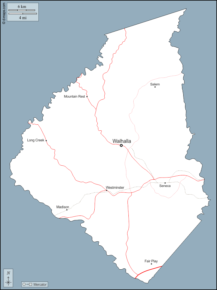 d-maps > संयुक्त राज्य > नॉर्थ कैरोलीना > ओकोनी काउंटी > बाह्यरेखा, मुख्य शहरों, सड़कों, नाम