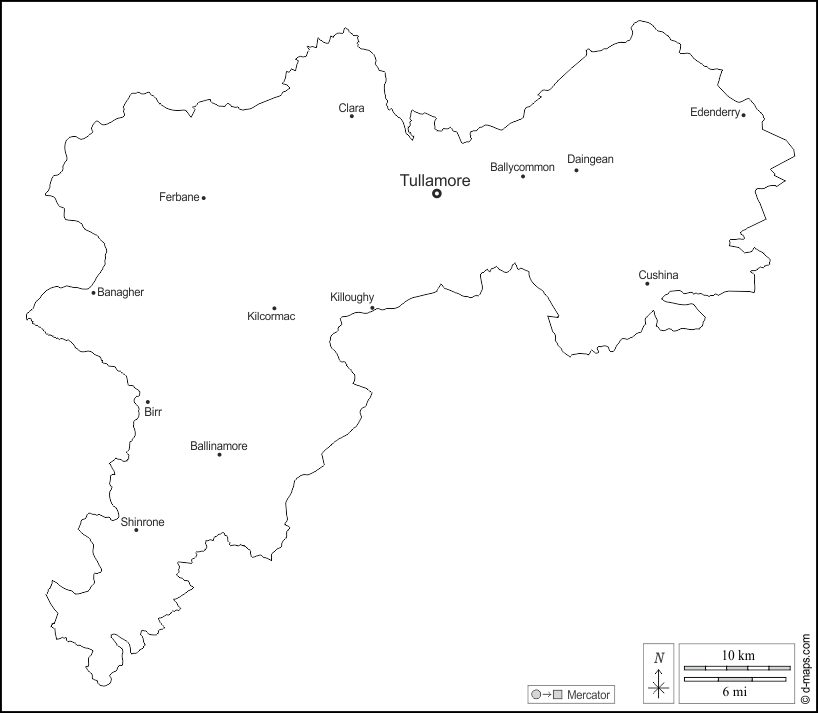 d-maps > यूरोप > आयरलैण्ड गणतंत्र > ऑफलै > बाह्यरेखा, मुख्य शहरों, नाम, सफेद