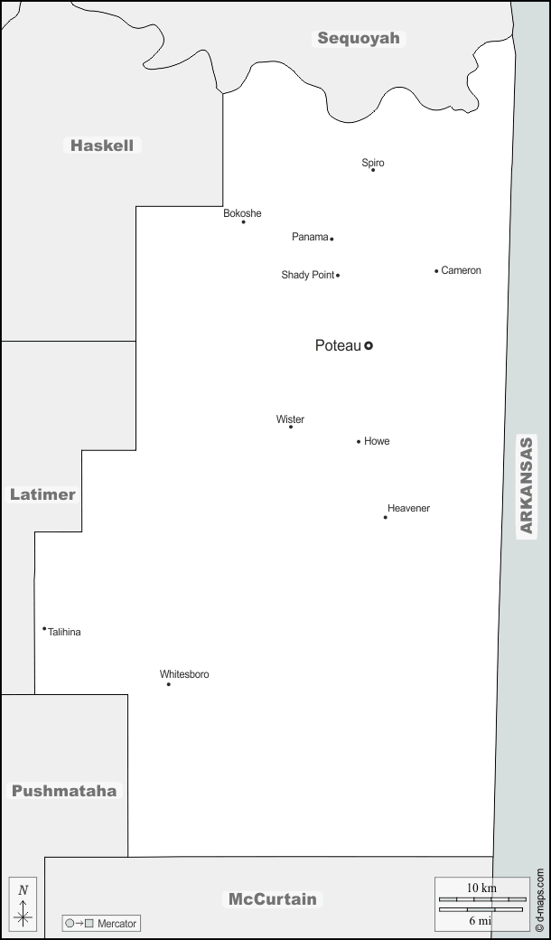 d-maps > संयुक्त राज्य > ओकलाहोमा > ले फ्लो काउंटी > सीमाओं, मुख्य शहरों, नाम
