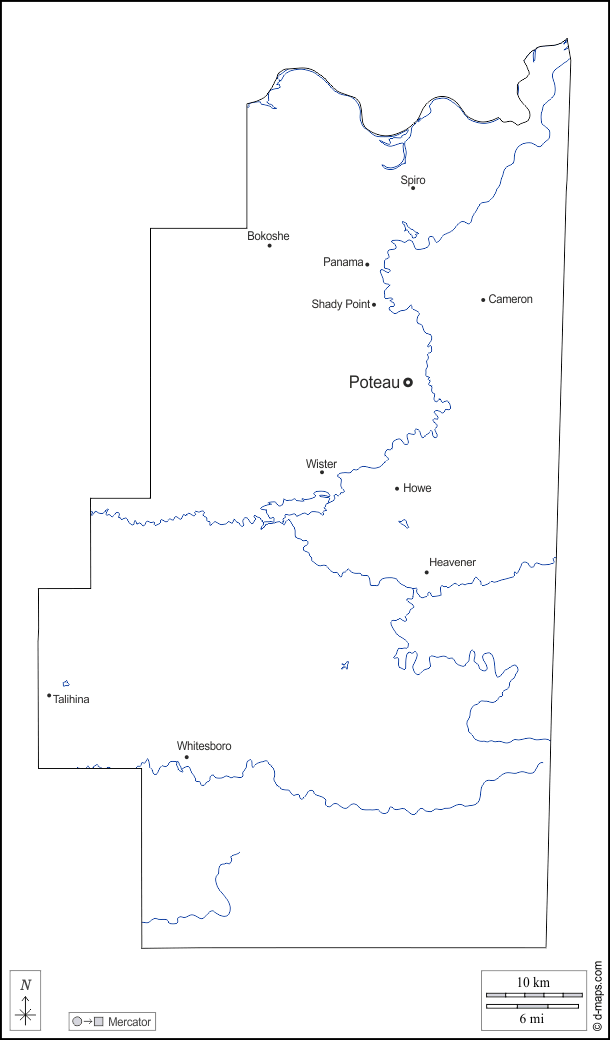 d-maps > संयुक्त राज्य > ओकलाहोमा > ले फ्लो काउंटी > बाह्यरेखा, जल-सर्वेक्षण, मुख्य शहरों, नाम, सफेद
