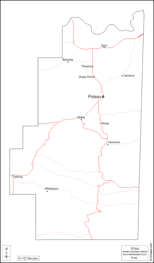 d-maps > संयुक्त राज्य > ओकलाहोमा > ले फ्लो काउंटी > बाह्यरेखा, मुख्य शहरों, सड़कों, नाम, सफेद