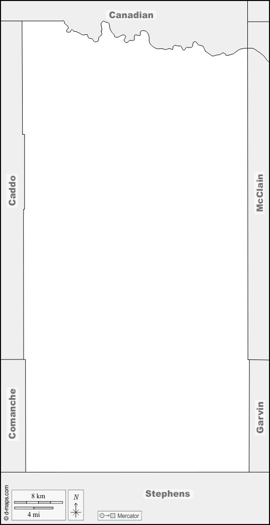 d-maps > संयुक्त राज्य > ओकलाहोमा > ग्रेडी काउंटी > सीमाओं, नाम