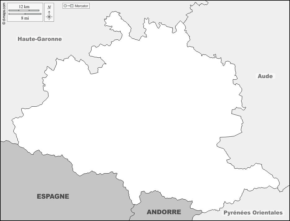 Ax-les-Thermes, Foix, Lavelanet, Mazères, Mirepoix, Pamiers, Saint-Girons, Saverdun, Tarascon-sur-Ariège, Varilhes.