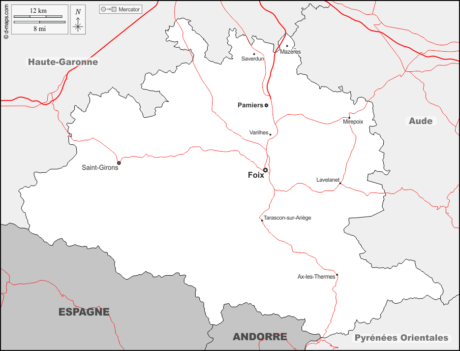 Europa > Francia > Ariège > frontiere, principali città, strade, nomi