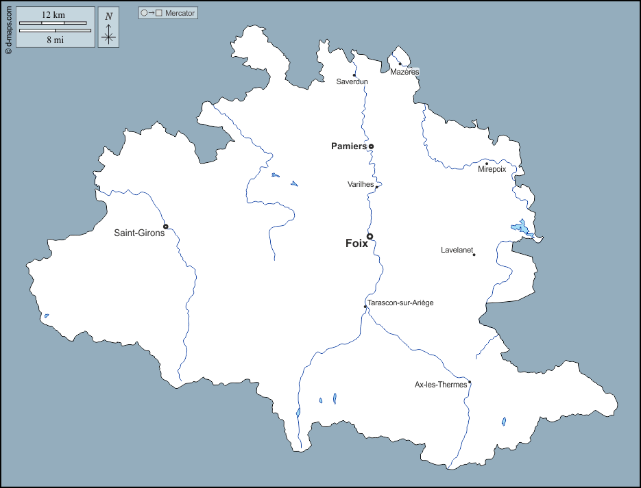 Europa > Francia > Ariège > contorni, idrografia, principali città, nomi