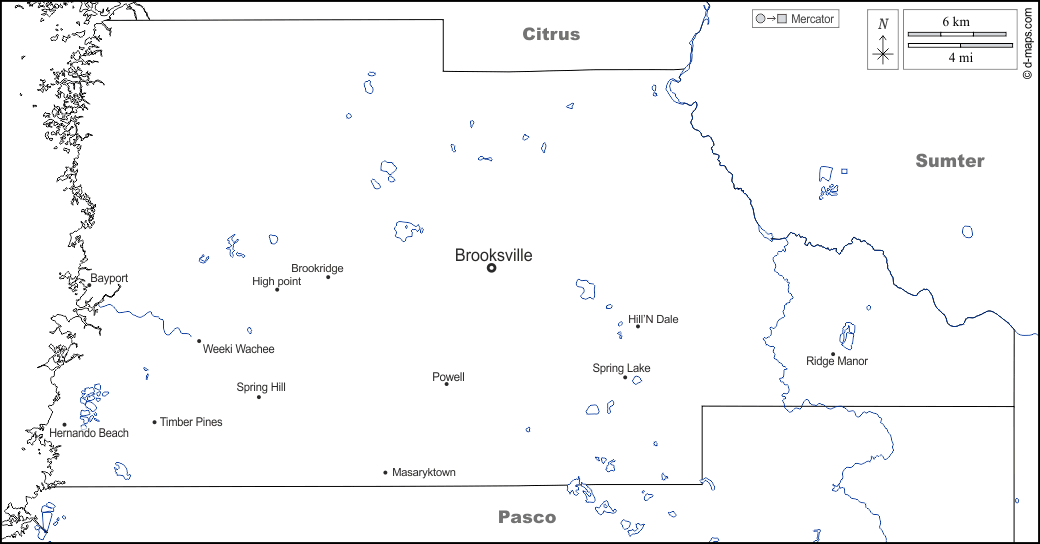 Stati Uniti d'America (USA) > Florida > Contea di Hernando > frontiere, idrografia, principali città, nomi, bianco