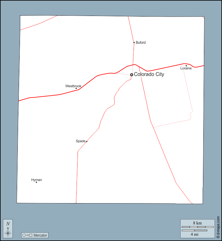 Stati Uniti d'America (USA) > Texas > Contea di Mitchell > contorni, principali città, strade, nomi