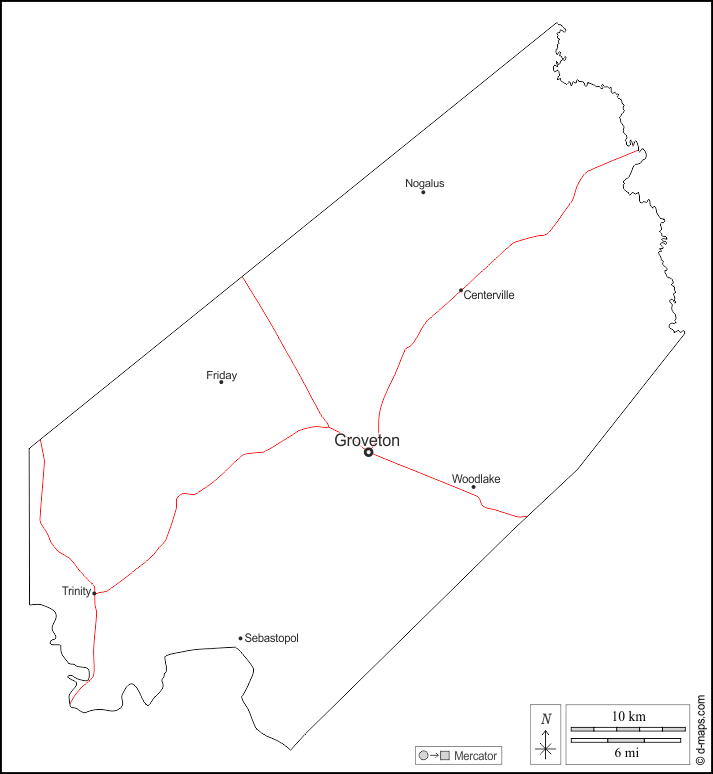 Stati Uniti d'America (USA) > Texas > Contea di Trinity > contorni, principali città, strade, nomi, bianco